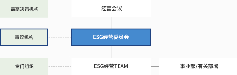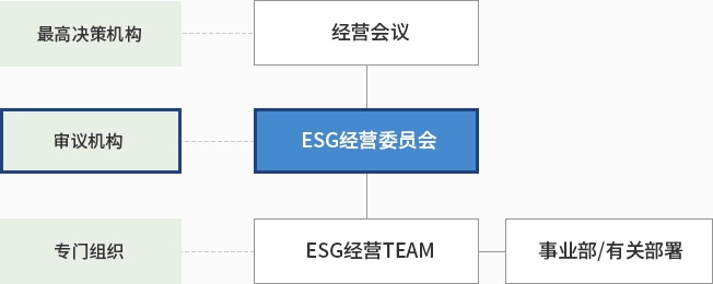 为了推进系统性ESG经营,在最高决策机构经营会议下属运营ESG经营委员会。