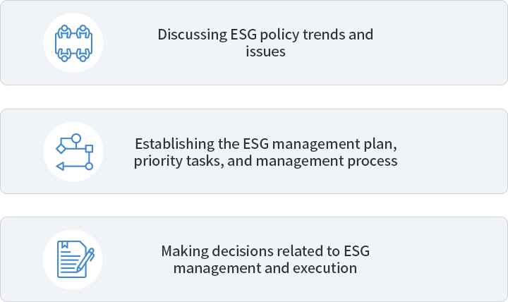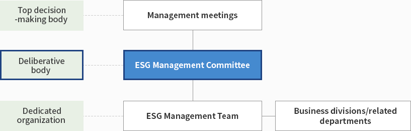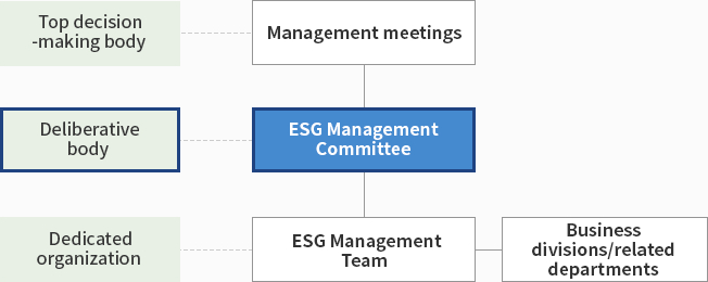 To promote systematic ESG management, we have established an ESG Management Committee under the Management Council, the top decision-making body.