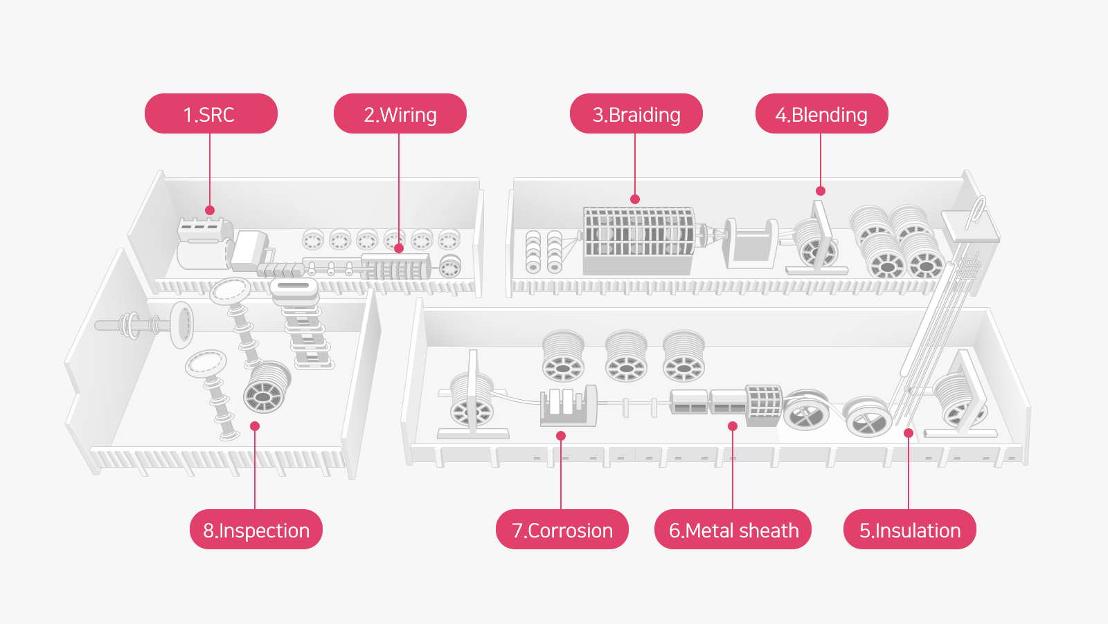Unlike copper power cables where loss due to electric resistance of the cable itself is inevitable, the superconductive state where electric resistance becomes zero at the extreme low temperature of -196℃ has been incorporated into this product. Therefore, energy loss is minimized and large-scale power transmission and distribution is enabled. This is where it gets its nickname as “the dream cable”. LS Cable & System successfully developed AC products in 2004 following Denmark, the US and Japan. In 2013, LS Cable & System developed DC products for the first time in the world. Currently, we are the only company in the world that owns both AC and DC superconductor technology.