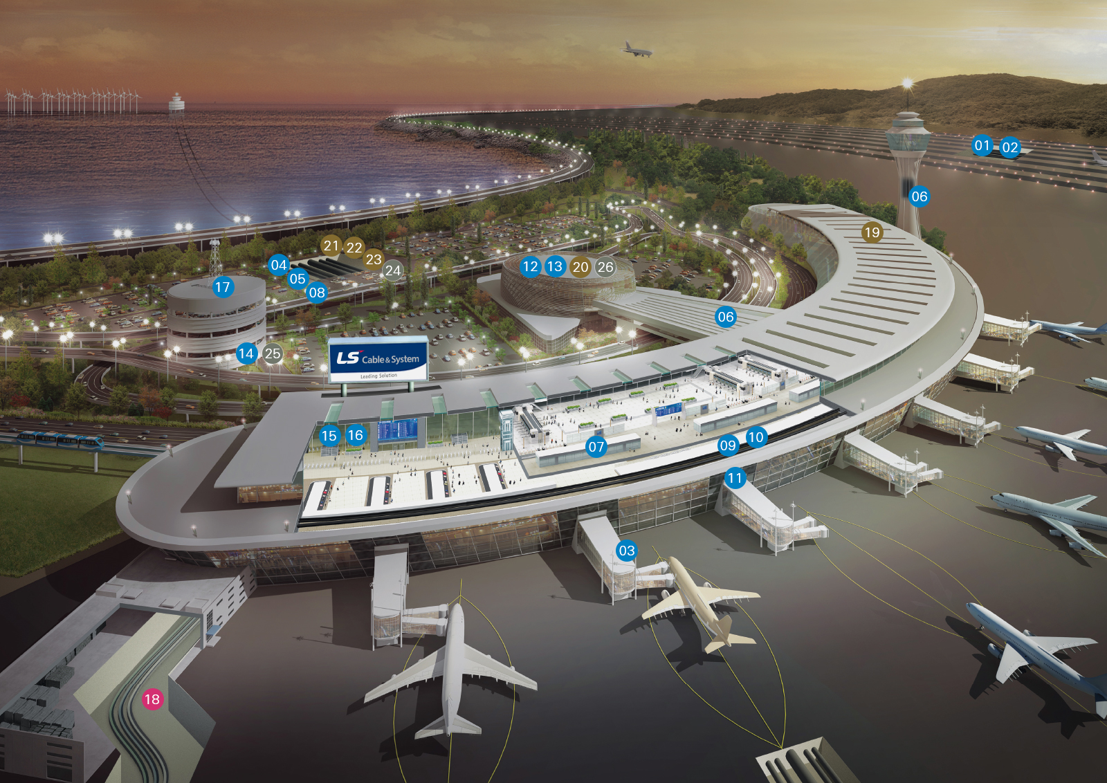 현대 첨단 공학 기술의 집합처 공항! LS전선은 공항이라는 특수한 환경에서도 안정적으로 전원을 공급하여 효율적인 운영을 돕는 다양한 전력케이블과 효과적인 정보통신망을 구축해 주는 통신 케이블을 제공하고 있습니다.